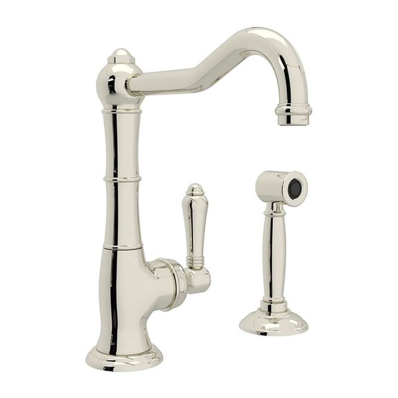 Single Hole Column Spout Bar/Food Prep Faucet With Sidespray With Metal Lever Handle In Polished Nickel Polished Nickel