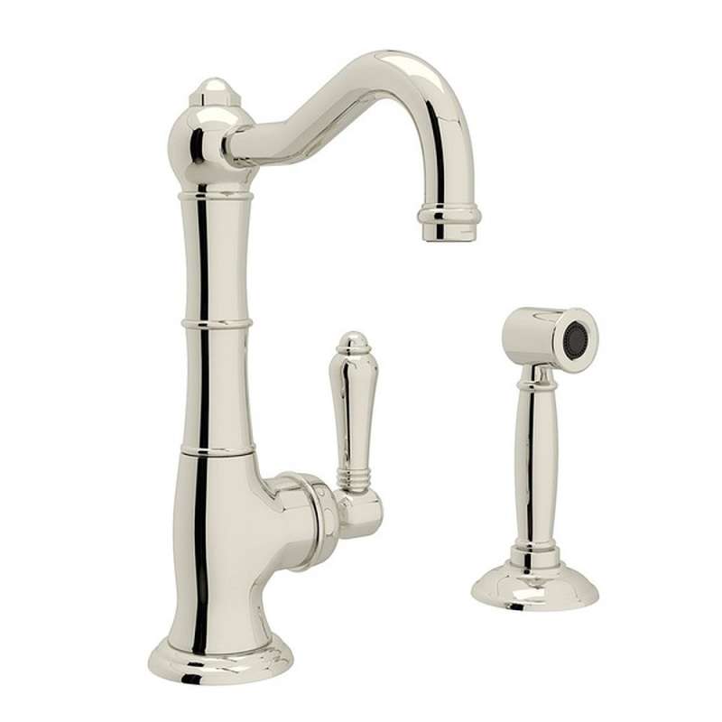 9" Single Hole Column Spout Kitchen Faucet With Sidespray With Metal Lever Handle In Polished Nickel Polished Nickel