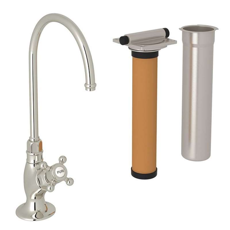 C-Spout Filter Faucet Kit With Mini Cross Handle In Polished Nickel Polished Nickel