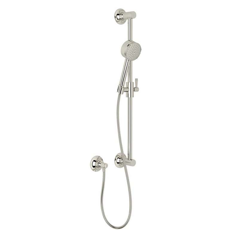 The Graceline Series embodies many of the "streamline Moderne" concepts from the smooth arch of the spout to the dial-shaped handles and knurled detailing.