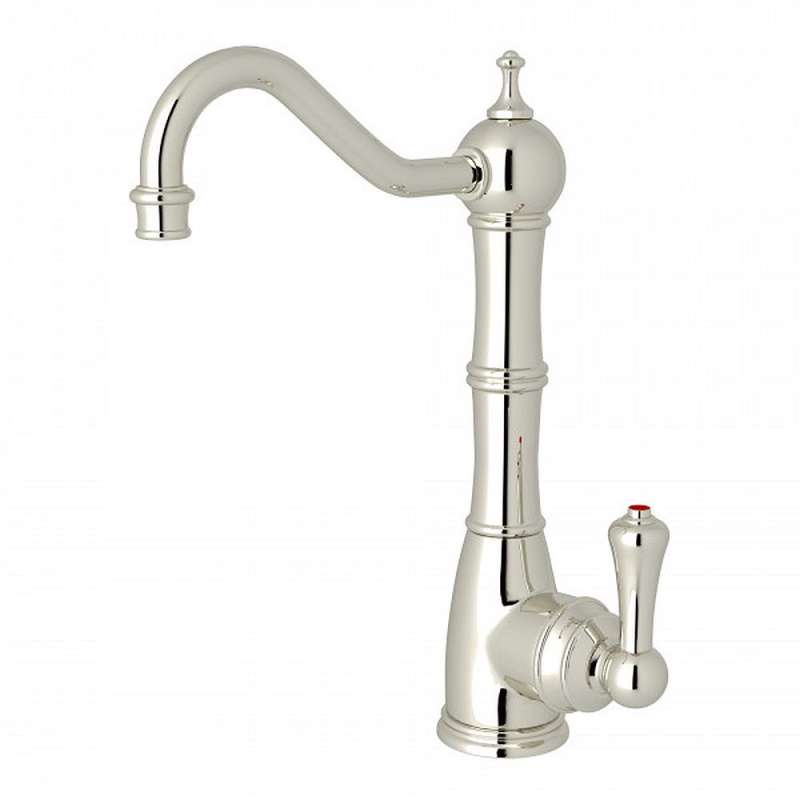 • Edwardian Column Spout Hot Water Faucet With Traditional Metal Lever Handle In Polished Nickel Polished Nickel