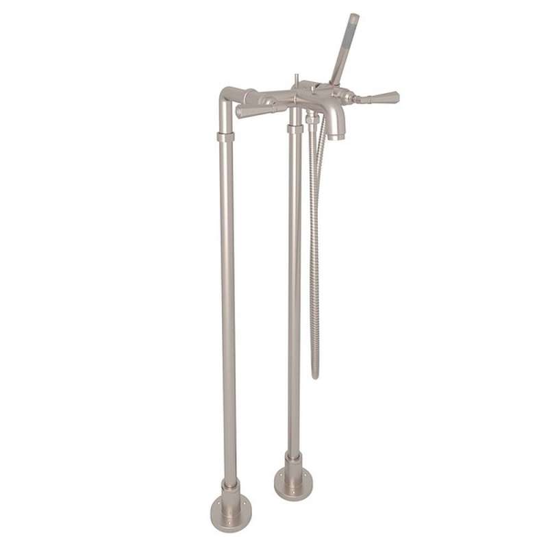 • San Giovanni AKIT2302NLMSTN Exposed Floor Mount Tub Filler with Metal Lever Handshower and Floor Pillar Legs or Supply Unions in Satin Nickel Satin Nickel