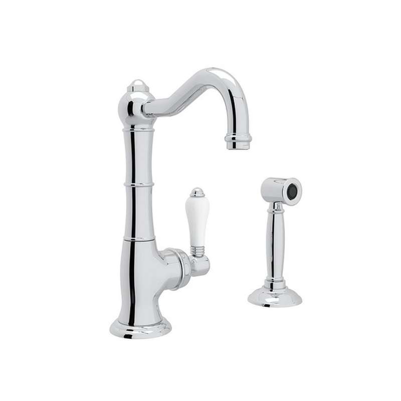 9" Single Hole Column Spout Kitchen Faucet With Sidespray With Porcelain Lever Handle Polished Chrome,Polished Nickel,Satin Nickel,Tuscan Brass