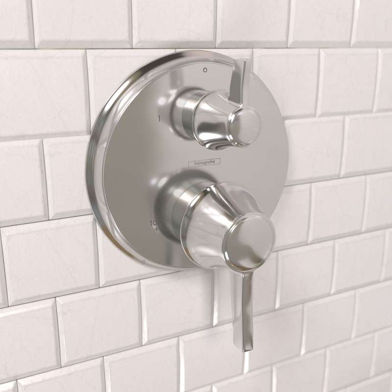 • Hansgrohe Ecostat Classic Thermostatic Trim With Volume Control And Diverter, Round In Brushed Nickel, 15753821 Brushed Nickel