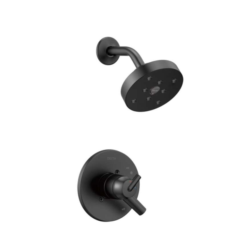 Inspired by the sleek elegance of modern European design, the Trinsic Bath Collection completes the look of any contemporary bath, from classic to rustic. Delta H2Okinetic Showers look different because they are different. Using advanced technology, H2Okinetic showers sculpt water into a unique wave pattern, giving you 3X the coverage of a standard shower head. The end result is a shower that provides more coverage, more warmth and more intensity for a truly drenching shower experience. With separate handles for volume and temperature control, this Delta tub/shower provides a more refined showering experience. Simply set the water at your preferred temperature and turn the shower on or off with the volume control handle - without interrupting your set temperature. Delta pressure-balance valves use Monitor Technology to protect you and your family from sudden temperature changes. Matte Black makes a statement in your space, cultivating a sophisticated air and coordinating flawlessly with most other fixtures and accents. With bright tones, Matte Black is undeniably modern with a strong contrast, but it can complement traditional or transitional spaces just as well when paired against warm nuetrals for a rustic feel akin to cast iron. Delta WaterSense labeled faucets, showers and toilets use at least 20 percent less water than the industry standard—saving you money without compromising performance.