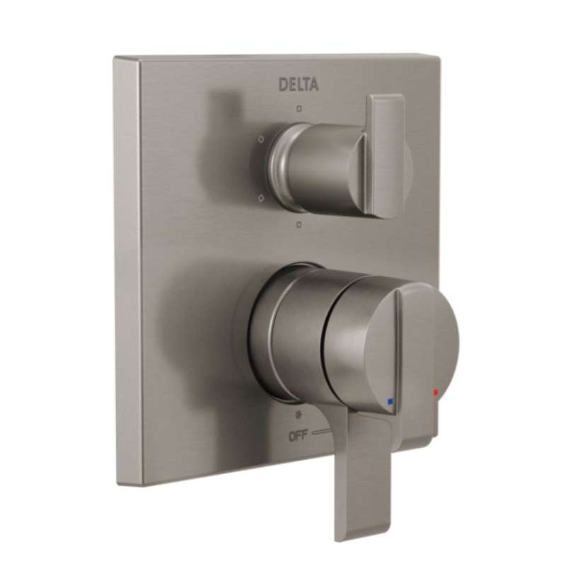 The Delta MultiChoice Integrated Shower Diverter consolidates custom shower design with its consumer-preferred streamlined style eliminating the need for an additional diverter valve. The angular modern style is boldly contemporary, featuring crisp lines for an upscale feel. With three popular style choices to coordinate with any bathroom decor, it provides you the flexibility to select the type of custom shower functionality you prefer. With the MultiChoice Universal system, you have the freedom to upgrade style and functionality later. And, because there's no need to alter plumbing behind the wall, you save time, effort and money on future renovation updates.