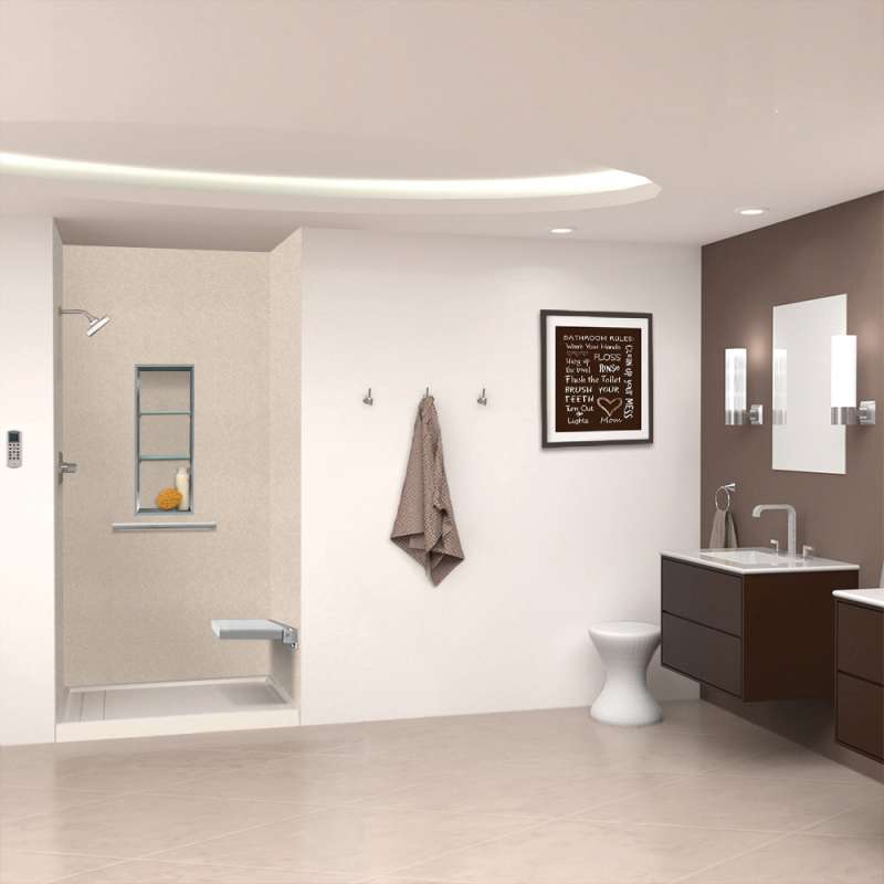 • SWK483696-49V SaraMar 48-in x 36-in x 96-in Glue to Wall 3-Piece Shower Wall Trimmable Kit, Sand Creme Velvet Sand Creme Velvet