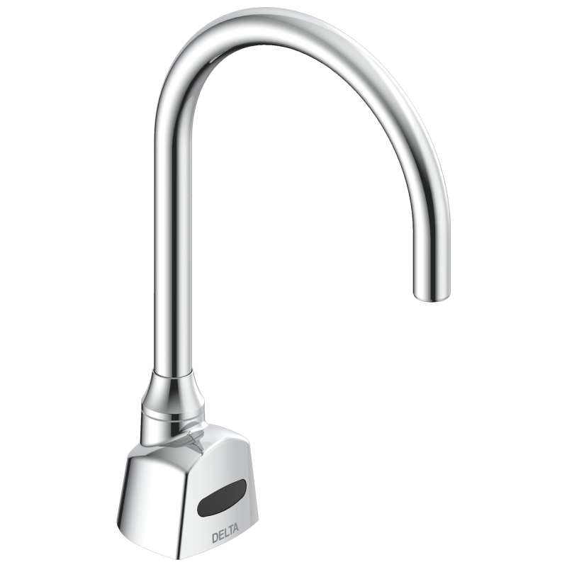 Introducing our high-performance faucet designed for efficiency and durability. This chrome-finished deck mount fixture boasts a flow rate of 1.5 gpm (5.7 L/min) with a smooth end outlet delivering a consistent laminar spray. The infrared sensor ensures touchless and hygienic operation, combining convenience with advanced technology. Operated by 4 “C” cell batteries, this faucet offers a wireless solution without compromising performance. The R35 gooseneck spout measures 6-in (152 mm) in length and stands at 11-in (279 mm) high, providing both functionality and an elegant design. Crafted with a one-piece cast main body, this faucet provides durability, while the solenoid and controller are neatly housed in a surface mount housing, enhancing the fixture’s overall aesthetic appeal. Elevate your space with this reliable and stylish faucet that seamlessly integrates performance and sophistication.