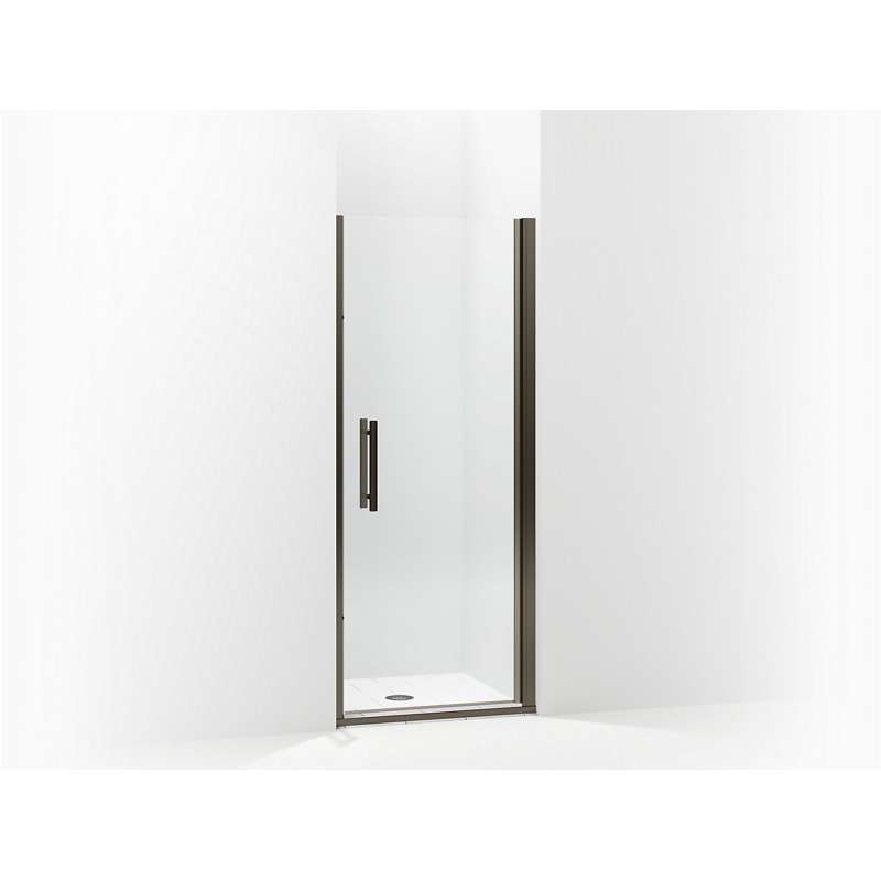 The Finesse Peak frameless swinging door offers minimal metal framing around the glass to showcase the bathing space. The headerless design allows for easy entry.