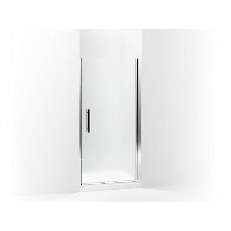 The Finesse Peak frameless swinging door offers minimal metal framing around the glass to showcase the bathing space. The headerless design allows for easy entry.