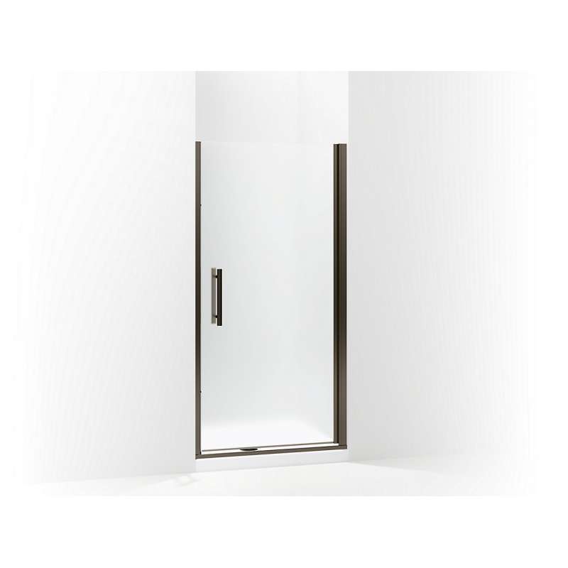 The Finesse Peak frameless swinging door offers minimal metal framing around the glass to showcase the bathing space. The headerless design allows for easy entry.