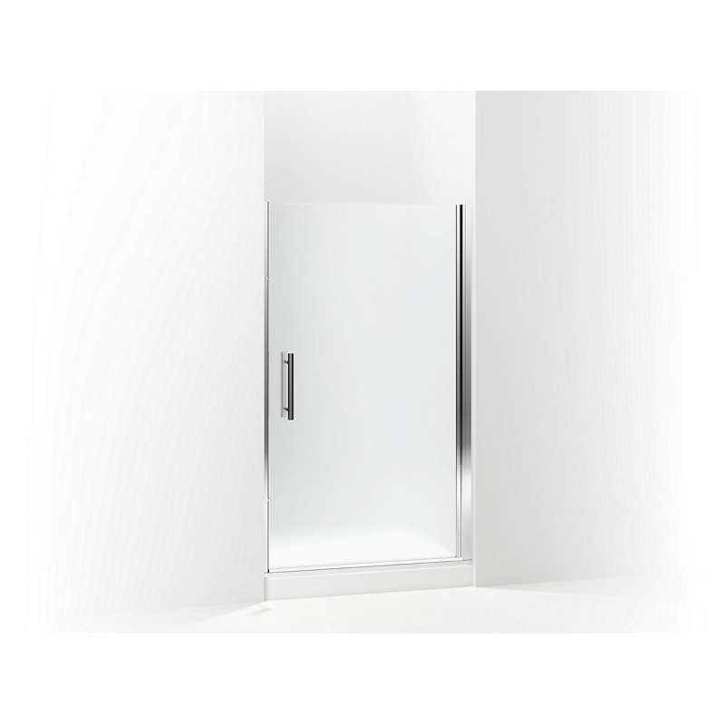The Finesse Peak frameless swinging door offers minimal metal framing around the glass to showcase the bathing space. The headerless design allows for easy entry.