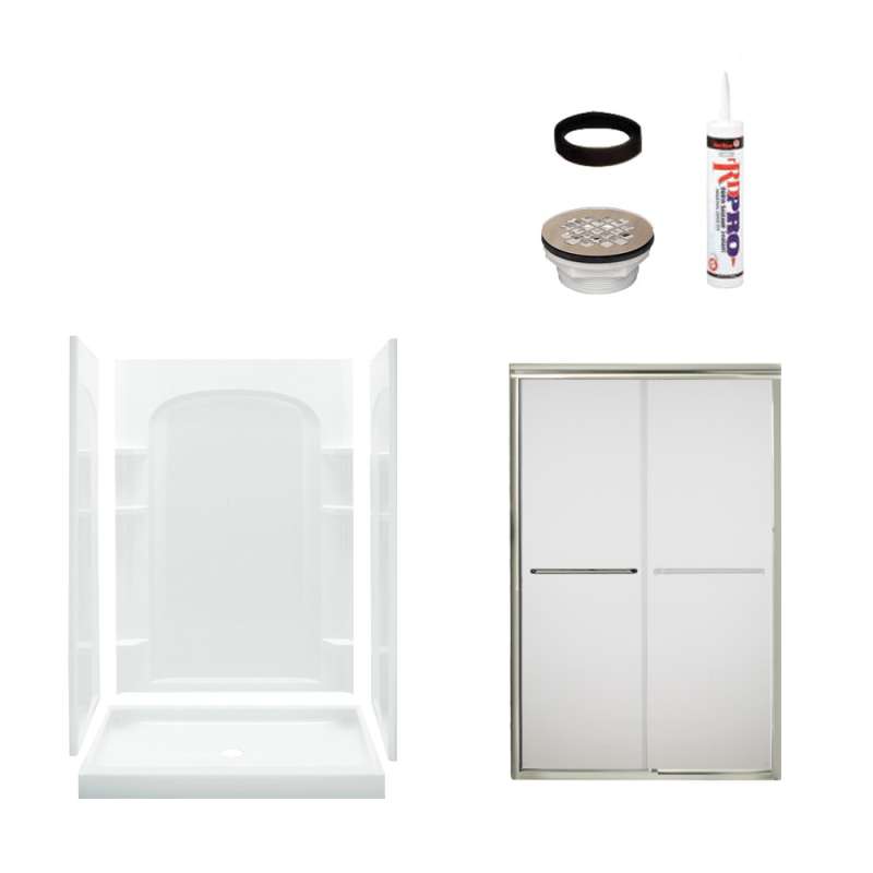 42.625-in to 47.625-in W x 70.0625-in H Frameless Sliding Shower Door in Silver with Frosted Glass Pattern