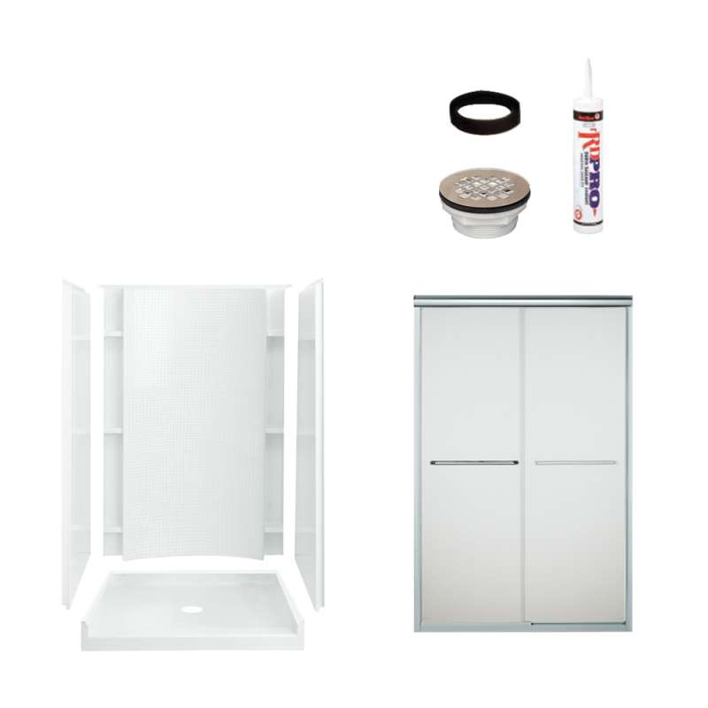 42.625-in to 47.625-in W x 70.0625-in H Frameless Sliding Shower Door in Silver with Frosted Glass Pattern