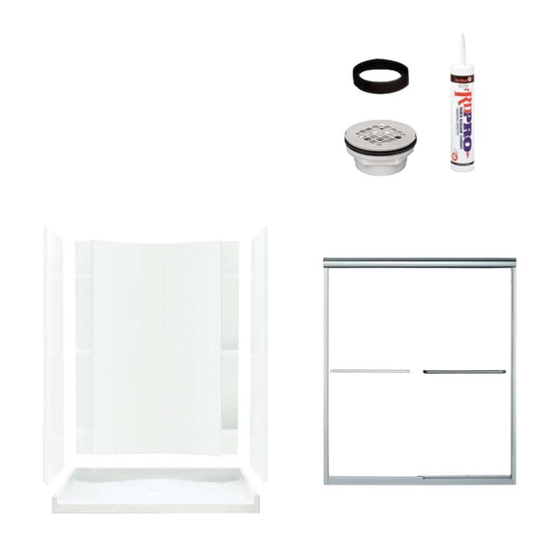 54.625-in to 59.625-in W x 70.0625-in H Frameless Sliding Shower Door in Silver with Clear Glass