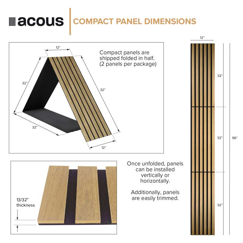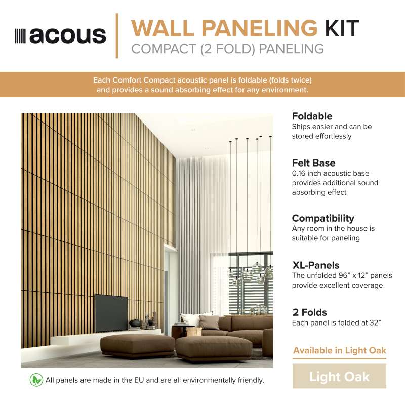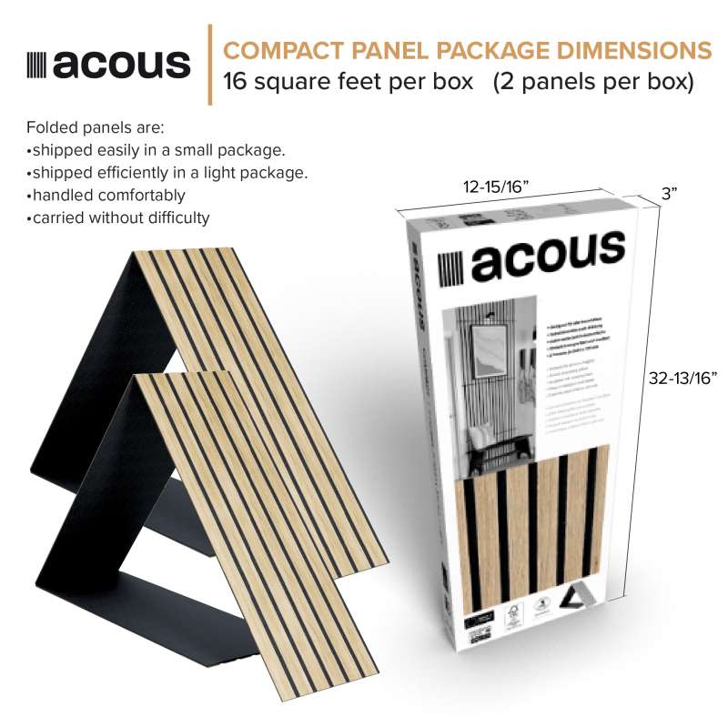 Adorn your walls with Acous Compact panels that feature a double fold for ease of shipping and maneuverability. These folds also offer a stylish and modern design aspect with horizonal slats once installed. Constructed to stand at 96 inches high, these panels will perfectly cover walls of 8 feet with no visible seams in between each panel. Crafted from premium brushed real oak, these panels are FSC-certified (C017145), ensuring sustainability.