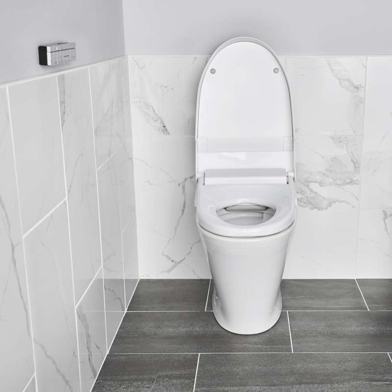 The Advanced Clean 100 SpaLet Bidet Toilet from American Standard combines the cleansing of a bidet with the sleek lines of a modern, auto-flush toilet. Featuring a heated bidet seat with dual nozzles that direct a soothing stream of warm water to both front and rear areas, it ensures a complete, comfortable cleansing experience. Beneficial for expectant and new moms, offering relief from uncomfortable conditions that come with pregnancy and postpartum. Engineered for unparalleled personal hygiene and design excellence, the Advanced Clean 100 SpaLet Bidet Toilet delivers a uniquely refreshing experience in a style to complement every bathroom.