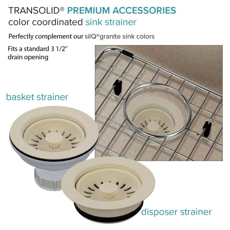 Transolid silQ® granite sinks are made with the union of natural granite and acrylic resin. The result gives Transolid sinks resistance to high temperatures, scratches, dents and chips, as well as impacts and violent shocks. The non-porous 100% food-safe surface grants you peace of mind and reduces the need for cleaning with harsh chemicals. Say goodbye to endless hours of shopping and say hello to pre-matched accessories that will make your sink the perfect multi-functional workspace. Covered by Transolid's lifetime limited residential warranty.