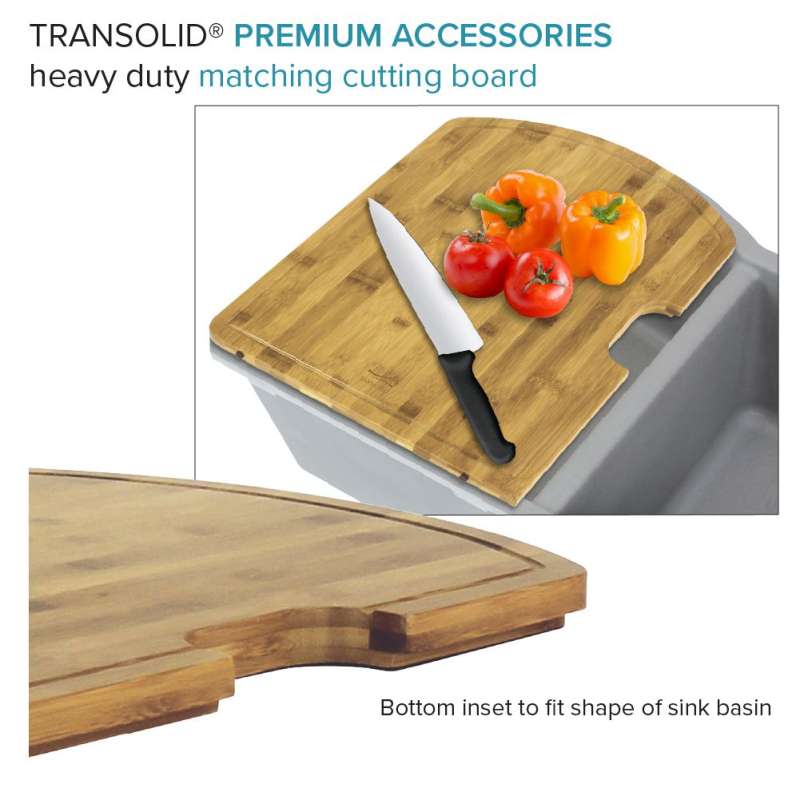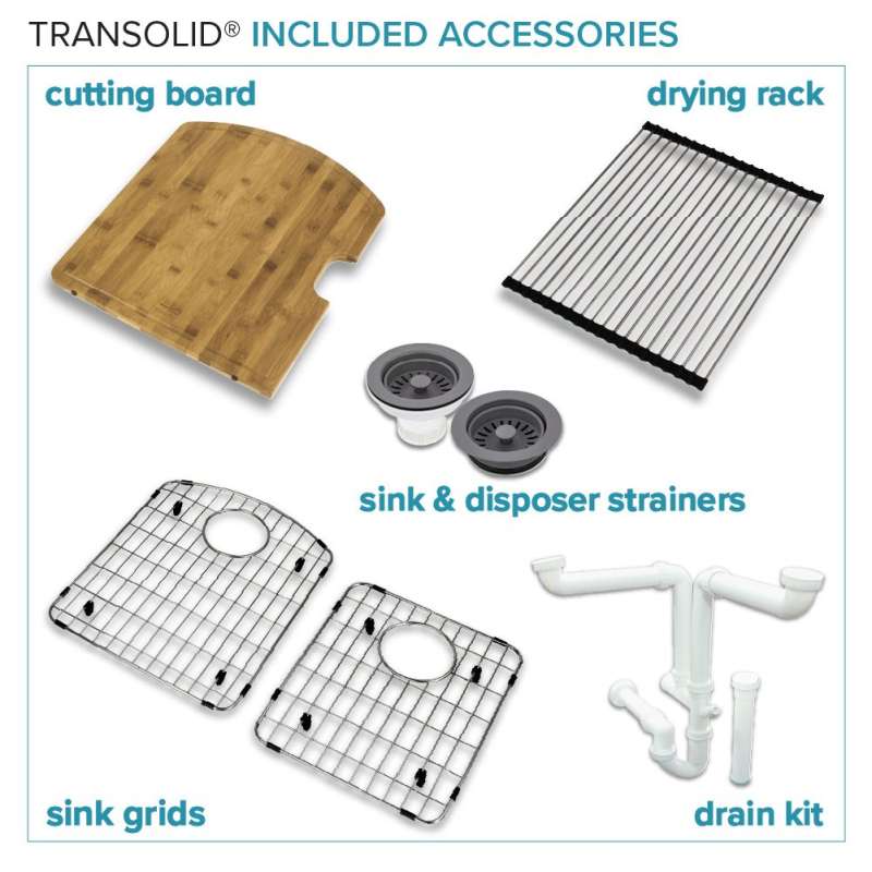 Transolid silQ® granite sinks are made with the union of natural granite and acrylic resin. The result gives Transolid sinks resistance to high temperatures, scratches, dents and chips, as well as impacts and violent shocks. The non-porous 100% food-safe surface grants you peace of mind and reduces the need for cleaning with harsh chemicals. Say goodbye to endless hours of shopping and say hello to pre-matched accessories that will make your sink the perfect multi-functional workspace. Covered by Transolid's lifetime limited residential warranty.