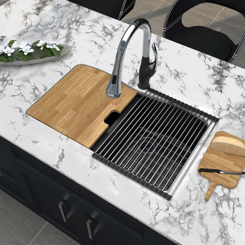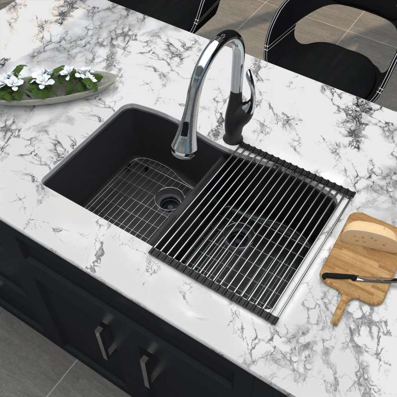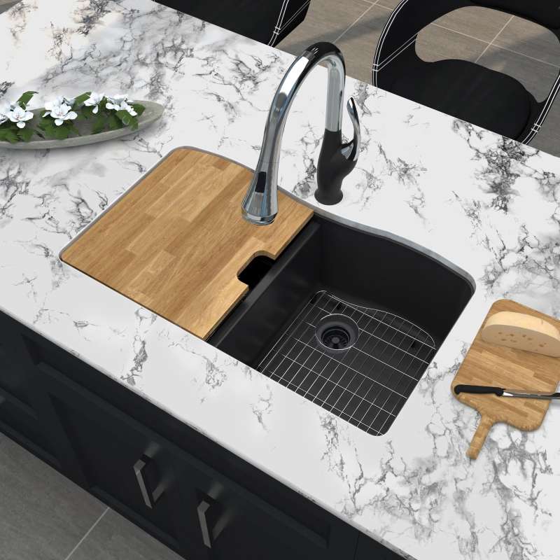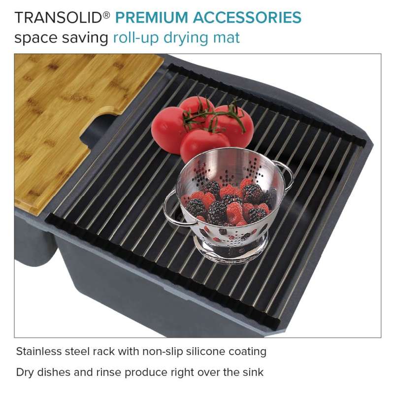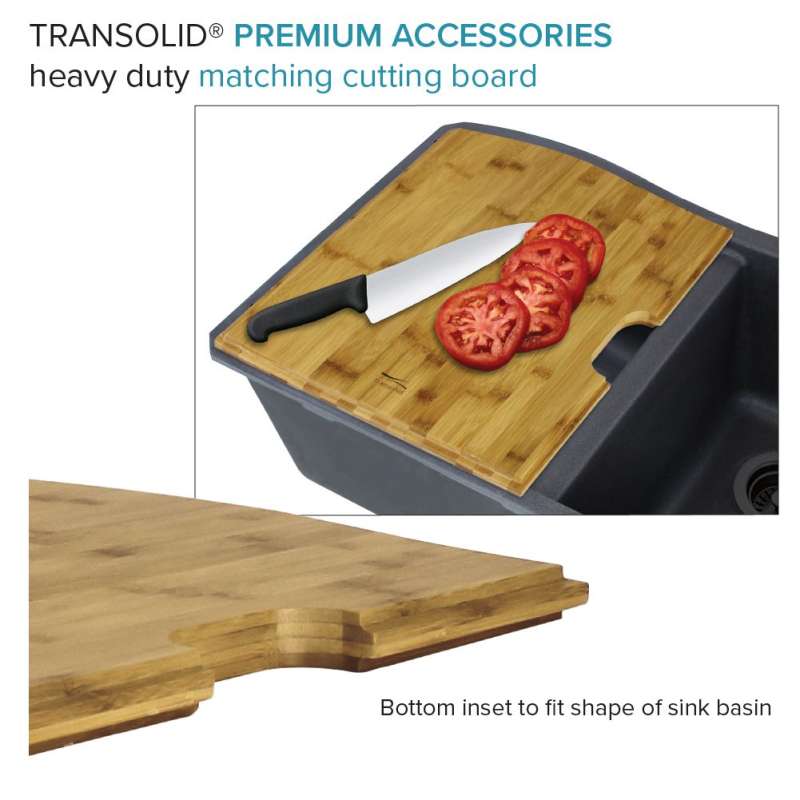 Transolid silQ® granite sinks are made with the union of natural granite and acrylic resin. The result gives Transolid sinks resistance to high temperatures, scratches, dents and chips, as well as impacts and violent shocks. The non-porous 100% food-safe surface grants you peace of mind and reduces the need for cleaning with harsh chemicals. Say goodbye to endless hours of shopping and say hello to pre-matched accessories that will make your sink the perfect multi-functional workspace. Covered by Transolid's lifetime limited residential warranty.