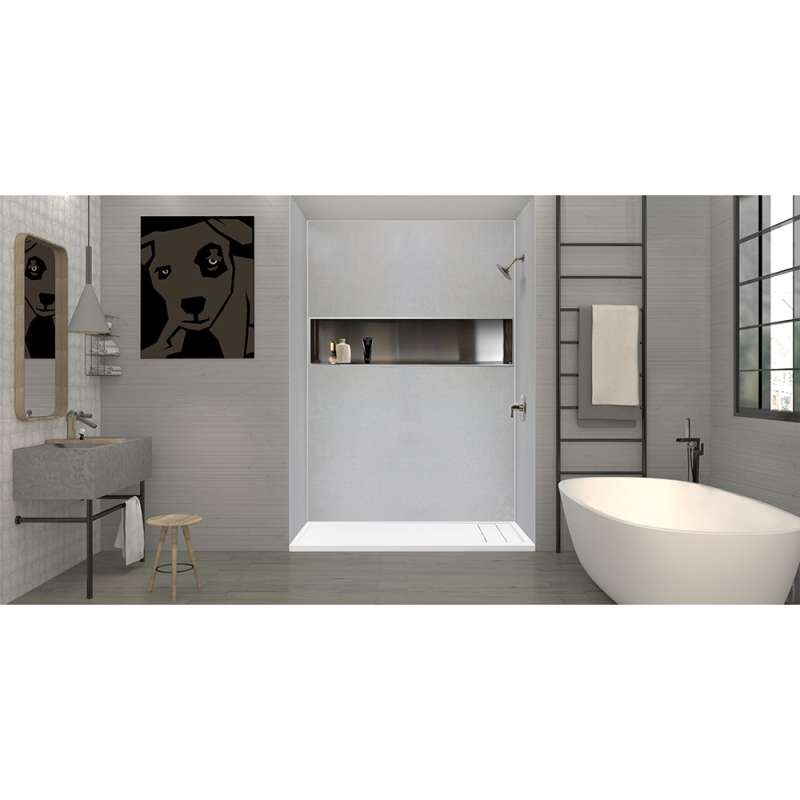 Transolid Ultra Low Linear shower bases are the perfect choice to replace an old tub. They are available in 60-in x 30-in and 60-in x 32-in to accommodate traditional tub sizes and the drain measures 8-1/4-in from the wall to line up with an existing tub drain. Made of numerous layers of Transtone, a sheet-molded compound material that is solid throughout the base and is supported by sturdy structural ribs underneath that radiate out from the drain opening. When combined with a thinset mortar installation, this creates a flex-free, water-tight installation and a foundation that you can count on. The base features a 2.6-in ultra-low threshold that is just a smidgen wider to even accommodate popular farmhouse style barn doors. The surface is scratch, impact and slip resistant with a beautiful slate finish for a minimalist look.