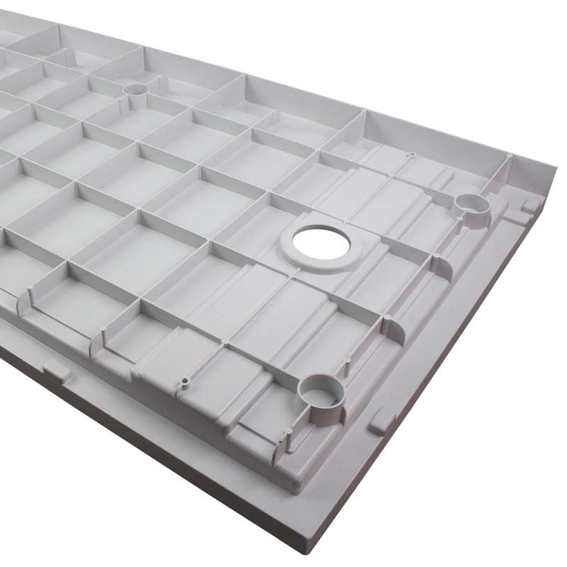 Transolid Ultra Low Linear shower bases are the perfect choice to replace an old tub. They are available in 60-in x 30-in and 60-in x 32-in to accommodate traditional tub sizes and the drain measures 8-1/4-in from the wall to line up with an existing tub drain. Made of numerous layers of Transtone, a sheet-molded compound material that is solid throughout the base and is supported by sturdy structural ribs underneath that radiate out from the drain opening. When combined with a thinset mortar installation, this creates a flex-free, water-tight installation and a foundation that you can count on. The base features a 2.6-in ultra-low threshold that is just a smidgen wider to even accommodate popular farmhouse style barn doors. The surface is scratch, impact and slip resistant with a beautiful slate finish for a minimalist look.