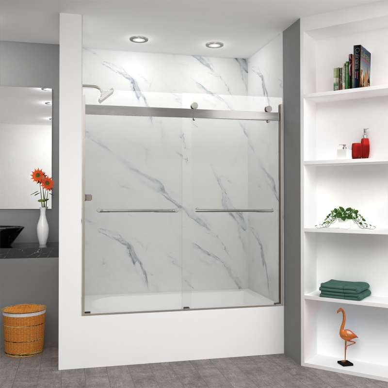 The Transolid Brianna Frameless Double Sliding Shower Door Collection offers an elegant, sophisticated look. It is available in several width and height combinations and features thick, premium 5/16 in. (8mm) clear tempered glass with professionally applied Nano clear glass coating, which provides superior dirt and water repellant and stain resistant benefits. The Brianna door provides up to 3/8 in. of out-of-plumb adjustability on each side to provide a watertight fit in your alcove. The Brianna door is available in several desirable hardware finish options to match your bathroom's interior design and layout perfectly. Built for an alcove (3-wall) shower enclosure, sliding glass shower doors can be opened from left or right with its full by-pass (both panels slide) design. 20 in. (500 mm from center to center) sliding shower door handles also function as towel bars, providing handy storage space for a folded bath towel or two hand towels. Multiple Transolid handle options are available, but this combination features the Turin handles in a beautiful Brushed Stainless finish. The Turin handles feature a unique, high-end design, adding a distinctive look to your Brianna shower door. These handles are substantial in weight and are every bit as functional as they are beautiful. Look for the matching grab bar to complete the look!