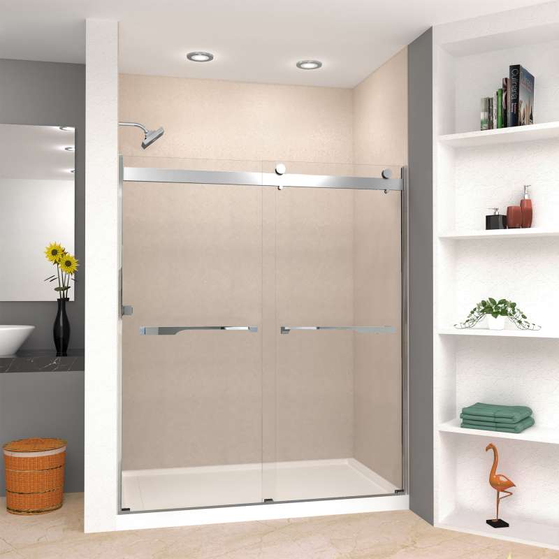 The Transolid Brianna Frameless Double Sliding Shower Door Collection offers an elegant, sophisticated look. It is available in several width and height combinations and features thick, premium 5/16 in. (8mm) clear tempered glass with professionally applied Nano clear glass coating, which provides superior dirt and water repellant and stain resistant benefits. The Brianna door provides up to 3/8 in. of out-of-plumb adjustability on each side to provide a watertight fit in your alcove. The Brianna door is available in several desirable hardware finish options to match your bathroom's interior design and layout perfectly. Built for an alcove (3-wall) shower enclosure, sliding glass shower doors can be opened from left or right with its full by-pass (both panels slide) design. 20 in. (500 mm from center to center) sliding shower door handles also function as towel bars, providing handy storage space for a folded bath towel or two hand towels. Multiple Transolid handle options are available, but this combination features the Justin handles in a beautiful Polished Chrome finish. The Justin handles feature a unique, high-end design, adding a distinctive look to your Brianna shower door. These handles are substantial in weight and are every bit as functional as they are beautiful. Look for the matching grab bar to complete the look!