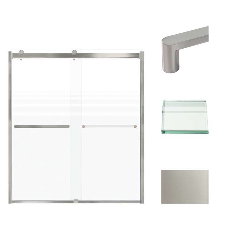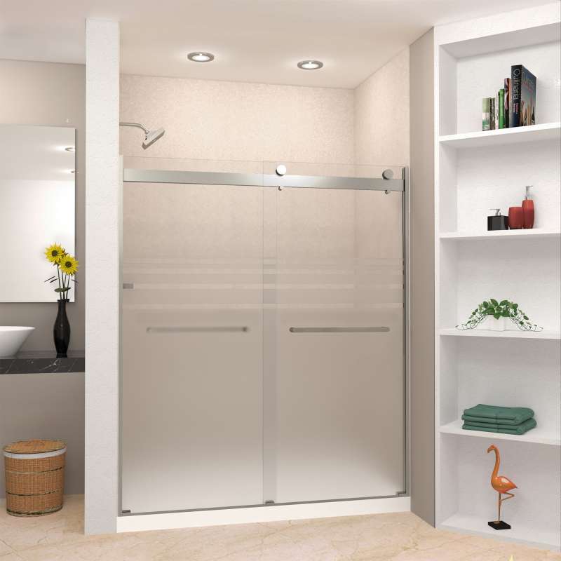 The Transolid Brianna Frameless Double Sliding Shower Door Collection offers an elegant, sophisticated look. It is available in several width and height combinations and features thick, premium 5/16 in. (8mm) frosted tempered glass with professionally applied Nano clear glass coating, which provides superior dirt and water repellant and stain resistant benefits. The Brianna door provides up to 3/8 in. of out-of-plumb adjustability on each side to provide a watertight fit in your alcove. The Brianna door is available in several desirable hardware finish options to match your bathroom's interior design and layout perfectly. Built for an alcove (3-wall) shower enclosure, sliding glass shower doors can be opened from left or right with its full by-pass (both panels slide) design. 20 in. (500 mm from center to center) sliding shower door handles also function as towel bars, providing handy storage space for a folded bath towel or two hand towels. Multiple Transolid handle options are available, but this combination features the Riley handles in a beautiful Brushed Stainless finish. The Riley handles feature a unique, high-end design, adding a distinctive look to your Brianna shower door. These handles are substantial in weight and are every bit as functional as they are beautiful. Look for the matching grab bar to complete the look!