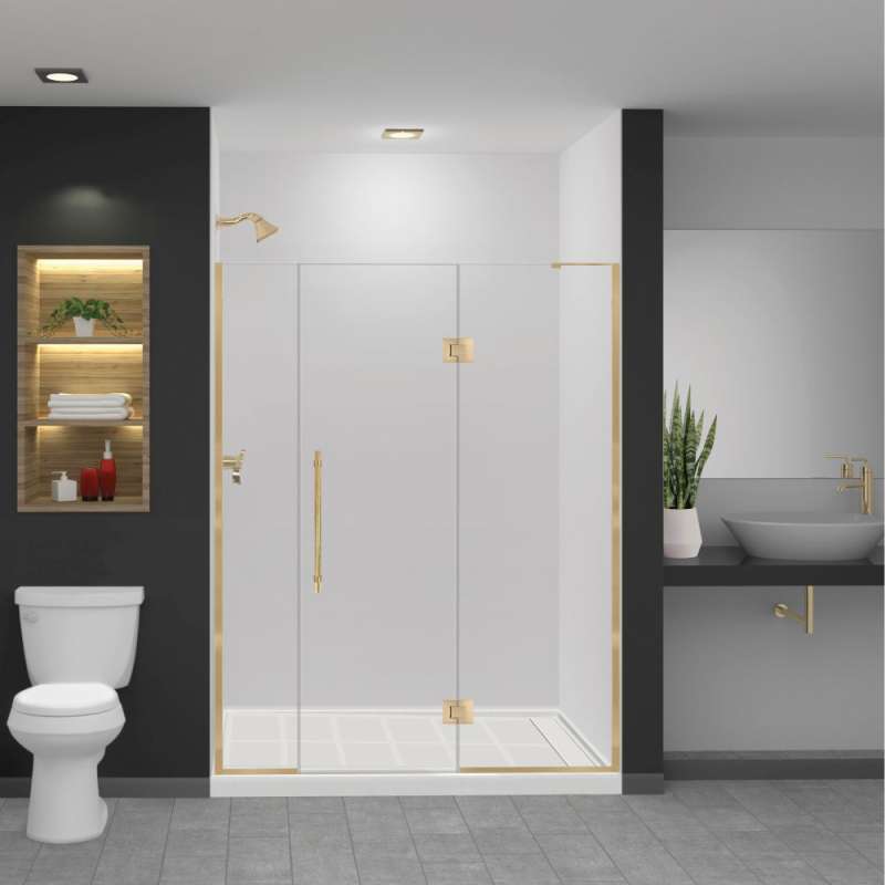 This Transolid Elizabeth shower door has a frameless swing shower door with a fixed panel that is every bit as elegant as it is functional. TruMotion and additional height set this Elizabeth door apart from its competition. This unique TruMotion slow closing hinge features an adjustable 3 position timing, enabling the user to adjust the closure from either slow or fast paced closing without having to worry about a slamming door. The side wall profiles allow 1/2” out-of-plumb adjustment on either side, making it possible for uneven walls to still hold a beautiful shower door. Transolid exclusive Nano ClearCoat water repellant and stain resistant glass coating adds superior protection from stains and is nearly maintenance-free. With clean lines, modern accents and an upscale look, the Elizabeth collection adds timeless style to any bathroom space.