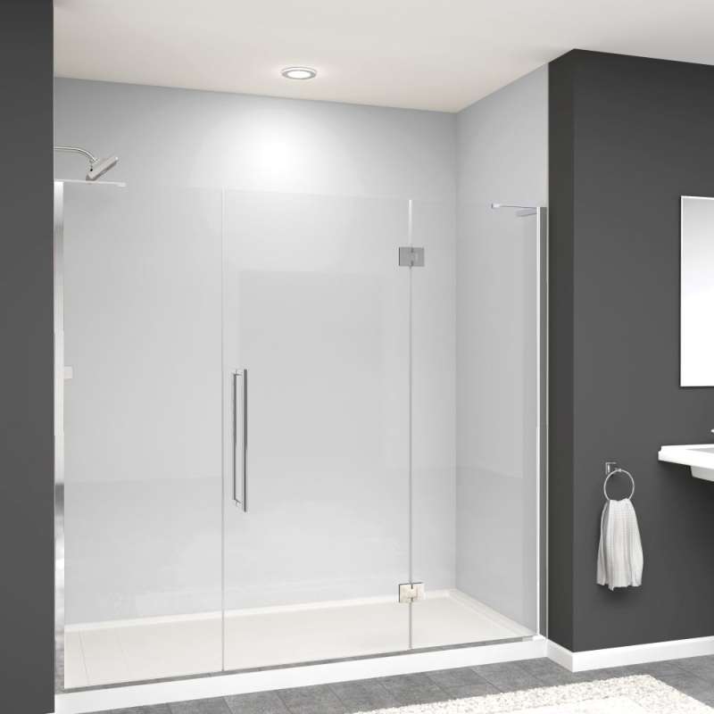 This Transolid Elizabeth shower door has a frameless swing shower door with a fixed panel that is every bit as elegant as it is functional. TruMotion and additional height set this Elizabeth door apart from its competition. This unique TruMotion slow closing hinge features an adjustable 3 position timing, enabling the user to adjust the closure from either slow or fast paced closing without having to worry about a slamming door. The side wall profiles allow 1/2” out-of-plumb adjustment on either side, making it possible for uneven walls to still hold a beautiful shower door. Transolid exclusive Nano ClearCoat water repellant and stain resistant glass coating adds superior protection from stains and is nearly maintenance-free. With clean lines, modern accents and an upscale look, the Elizabeth collection adds timeless style to any bathroom space.