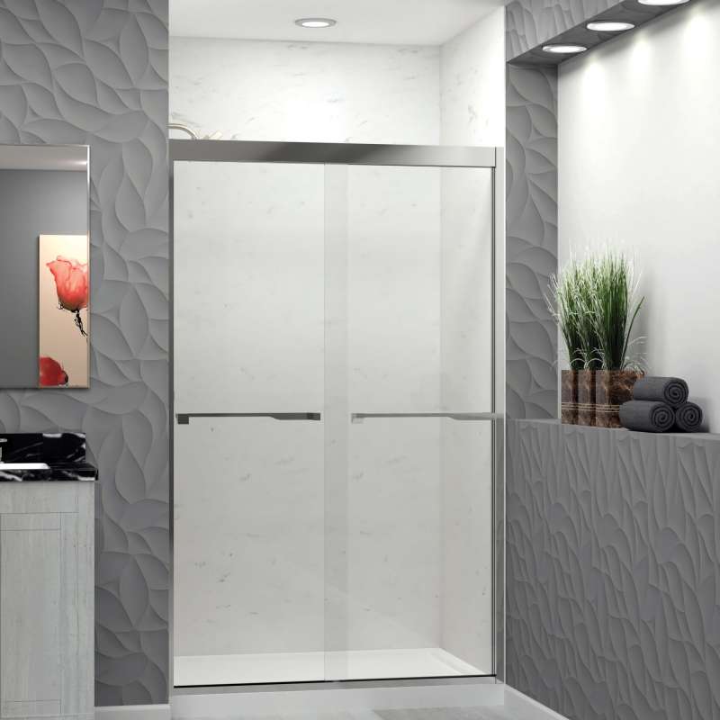 The Transolid Frederick Semi-Frameless By-Pass Shower Door Collection combines the practicality of a space saving design with custom quality craftsmanship. The collection features thick, premium 5/16 in. (8mm) clear tempered glass with professionally applied Nano clear glass coating, which provides superior dirt and water repellant and stain resistant benefits. TruMotion® technology makes our shower doors close softly and effortlessly no matter how hard you slam them or how heavy they are and the Frederick door provides up to 2/5 in. of out-of-plumb adjustability on each side to provide a watertight fit in your alcove. The Frederick Door is available in a wide array of width and height options with several desirable hardware finish options to match your bathroom's interior design and layout perfectly. Built for an alcove (3-wall) shower enclosure, sliding glass shower doors can be opened from left or right with its full by-pass (both panels slide) design. 20 in. (500 mm from center to center) sliding shower door handles also function as towel bars, providing handy storage space for a folded bath towel or two hand towels. Multiple Transolid handle options are available, but this combination features the rustic Justin handles in a Polished Chrome finish. The Justin handles are part of the Diamond series and feature a unique, high-end design, adding a distinctive look to your Frederick shower door. These handles are substantial in weight and are every bit as functional as they are beautiful. Look for the matching grab bar to complete the look!