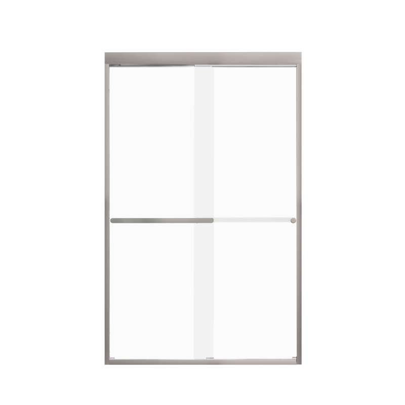 The Transolid Frederick Semi-Frameless By-Pass Shower Door Collection combines the practicality of a space saving design with custom quality craftsmanship. The collection features thick, premium 5/16 in. (8mm) frosted tempered glass with professionally applied Nano clear glass coating, which provides superior dirt and water repellant and stain resistant benefits. TruMotion® technology makes our shower doors close softly and effortlessly no matter how hard you slam them or how heavy they are and the Frederick door provides up to 2/5 in. of out-of-plumb adjustability on each side to provide a watertight fit in your alcove. The Frederick Door is available in a wide array of width and height options with several desirable hardware finish options to match your bathroom's interior design and layout perfectly. Built for an alcove (3-wall) shower enclosure, sliding glass shower doors can be opened from left or right with its full by-pass (both panels slide) design. 20 in. (500 mm from center to center) sliding shower door handles also function as towel bars, providing handy storage space for a folded bath towel or two hand towels. Multiple Transolid handle options are available, but this combination features the contemporary Riley handles in a Brushed Stainless finish. The Riley handles are part of the Meridian series and feature a unique, high-end design, adding a distinctive look to your Frederick shower door. These handles are substantial in weight and are every bit as functional as they are beautiful. Look for the matching grab bar to complete the look!