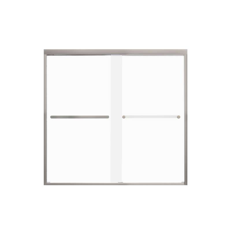 The Transolid Frederick Semi-Frameless By-Pass Shower Door Collection combines the practicality of a space saving design with custom quality craftsmanship. The collection features thick, premium 5/16 in. (8mm) frosted tempered glass with professionally applied Nano clear glass coating, which provides superior dirt and water repellant and stain resistant benefits. TruMotion® technology makes our shower doors close softly and effortlessly no matter how hard you slam them or how heavy they are and the Frederick door provides up to 2/5 in. of out-of-plumb adjustability on each side to provide a watertight fit in your alcove. The Frederick Door is available in a wide array of width and height options with several desirable hardware finish options to match your bathroom's interior design and layout perfectly. Built for an alcove (3-wall) shower enclosure, sliding glass shower doors can be opened from left or right with its full by-pass (both panels slide) design. 20 in. (500 mm from center to center) sliding shower door handles also function as towel bars, providing handy storage space for a folded bath towel or two hand towels. Multiple Transolid handle options are available, but this combination features the contemporary Riley handles in a Brushed Stainless finish. The Riley handles are part of the Meridian series and feature a unique, high-end design, adding a distinctive look to your Frederick shower door. These handles are substantial in weight and are every bit as functional as they are beautiful. Look for the matching grab bar to complete the look!