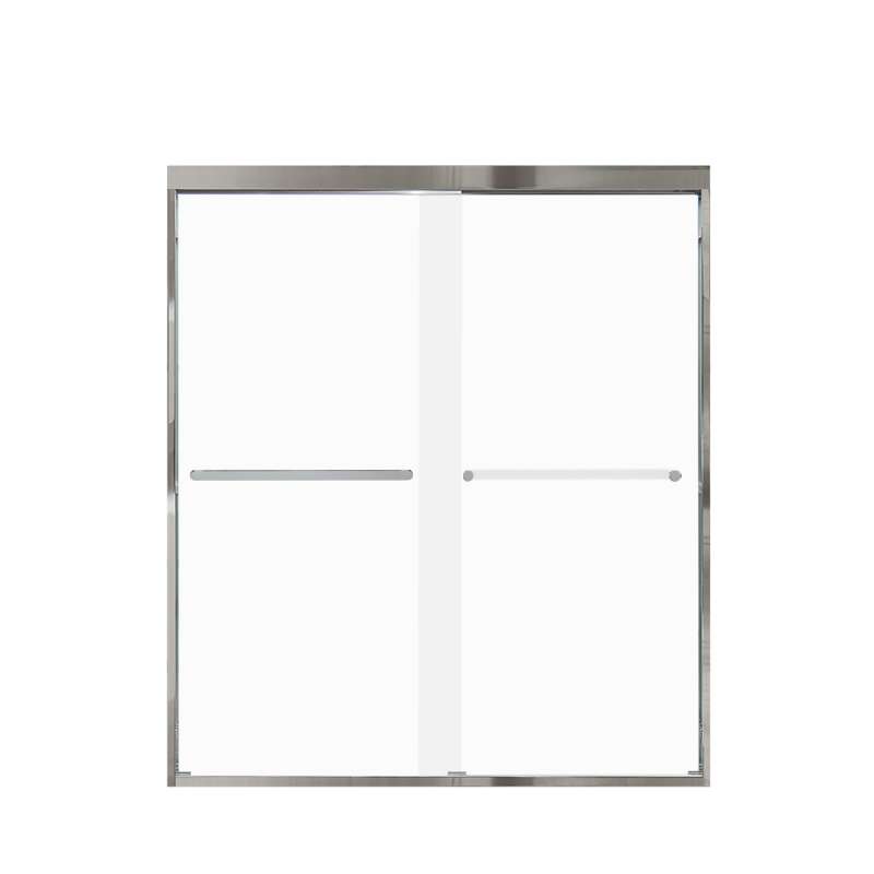 The Transolid Frederick Semi-Frameless By-Pass Shower Door Collection combines the practicality of a space saving design with custom quality craftsmanship. The collection features thick, premium 5/16 in. (8mm) frosted tempered glass with professionally applied Nano clear glass coating, which provides superior dirt and water repellant and stain resistant benefits. TruMotion® technology makes our shower doors close softly and effortlessly no matter how hard you slam them or how heavy they are and the Frederick door provides up to 2/5 in. of out-of-plumb adjustability on each side to provide a watertight fit in your alcove. The Frederick Door is available in a wide array of width and height options with several desirable hardware finish options to match your bathroom's interior design and layout perfectly. Built for an alcove (3-wall) shower enclosure, sliding glass shower doors can be opened from left or right with its full by-pass (both panels slide) design. 20 in. (500 mm from center to center) sliding shower door handles also function as towel bars, providing handy storage space for a folded bath towel or two hand towels. Multiple Transolid handle options are available, but this combination features the contemporary Riley handles in a Polished Chrome finish. The Riley handles are part of the Meridian series and feature a unique, high-end design, adding a distinctive look to your Frederick shower door. These handles are substantial in weight and are every bit as functional as they are beautiful. Look for the matching grab bar to complete the look!