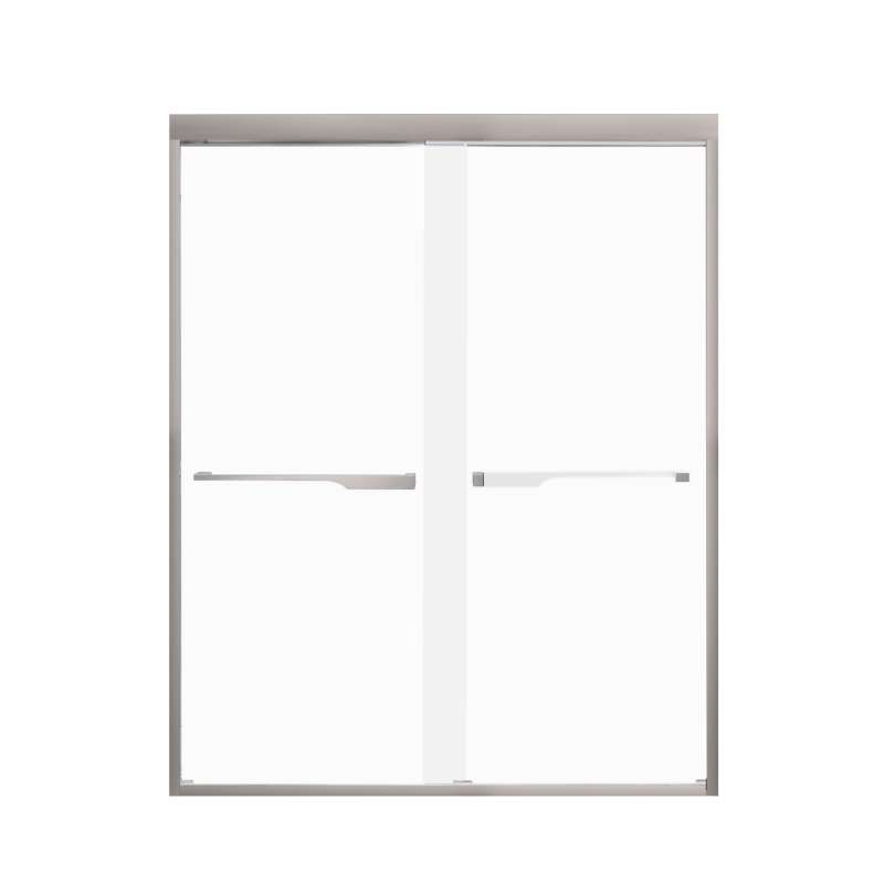 The Transolid Frederick Semi-Frameless By-Pass Shower Door Collection combines the practicality of a space saving design with custom quality craftsmanship. The collection features thick, premium 5/16 in. (8mm) frosted tempered glass with professionally applied Nano clear glass coating, which provides superior dirt and water repellant and stain resistant benefits. TruMotion® technology makes our shower doors close softly and effortlessly no matter how hard you slam them or how heavy they are and the Frederick door provides up to 2/5 in. of out-of-plumb adjustability on each side to provide a watertight fit in your alcove. The Frederick Door is available in a wide array of width and height options with several desirable hardware finish options to match your bathroom's interior design and layout perfectly. Built for an alcove (3-wall) shower enclosure, sliding glass shower doors can be opened from left or right with its full by-pass (both panels slide) design. 20 in. (500 mm from center to center) sliding shower door handles also function as towel bars, providing handy storage space for a folded bath towel or two hand towels. Multiple Transolid handle options are available, but this combination features the rustic Justin handles in a Brushed Stainless finish. The Justin handles are part of the Diamond series and feature a unique, high-end design, adding a distinctive look to your Frederick shower door. These handles are substantial in weight and are every bit as functional as they are beautiful. Look for the matching grab bar to complete the look!