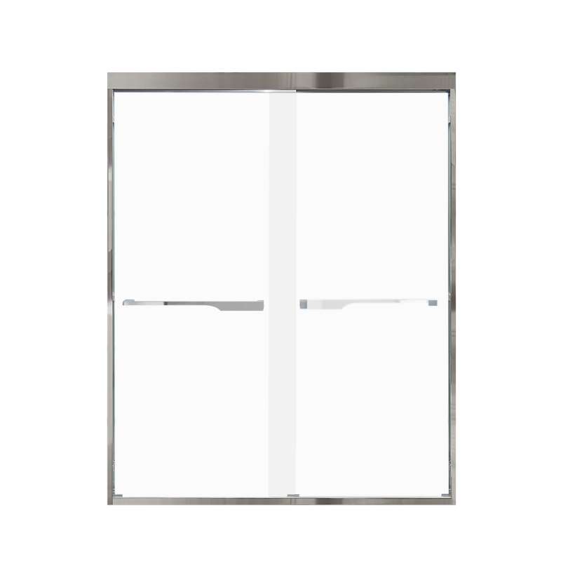 The Transolid Frederick Semi-Frameless By-Pass Shower Door Collection combines the practicality of a space saving design with custom quality craftsmanship. The collection features thick, premium 5/16 in. (8mm) frosted tempered glass with professionally applied Nano clear glass coating, which provides superior dirt and water repellant and stain resistant benefits. TruMotion® technology makes our shower doors close softly and effortlessly no matter how hard you slam them or how heavy they are and the Frederick door provides up to 2/5 in. of out-of-plumb adjustability on each side to provide a watertight fit in your alcove. The Frederick Door is available in a wide array of width and height options with several desirable hardware finish options to match your bathroom's interior design and layout perfectly. Built for an alcove (3-wall) shower enclosure, sliding glass shower doors can be opened from left or right with its full by-pass (both panels slide) design. 20 in. (500 mm from center to center) sliding shower door handles also function as towel bars, providing handy storage space for a folded bath towel or two hand towels. Multiple Transolid handle options are available, but this combination features the rustic Justin handles in a Polished Chrome finish. The Justin handles are part of the Diamond series and feature a unique, high-end design, adding a distinctive look to your Frederick shower door. These handles are substantial in weight and are every bit as functional as they are beautiful. Look for the matching grab bar to complete the look!