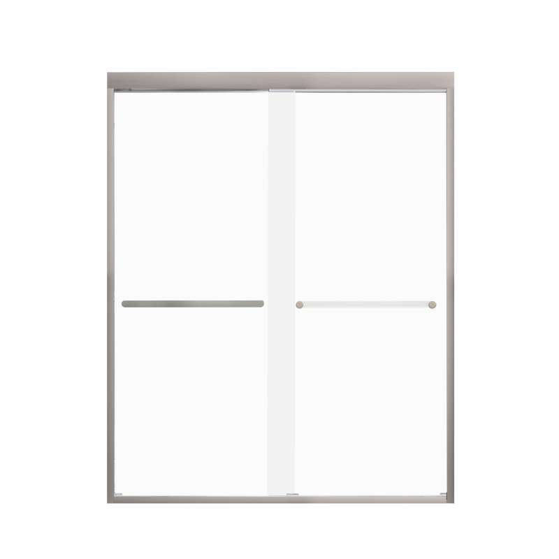 The Transolid Frederick Semi-Frameless By-Pass Shower Door Collection combines the practicality of a space saving design with custom quality craftsmanship. The collection features thick, premium 5/16 in. (8mm) frosted tempered glass with professionally applied Nano clear glass coating, which provides superior dirt and water repellant and stain resistant benefits. TruMotion® technology makes our shower doors close softly and effortlessly no matter how hard you slam them or how heavy they are and the Frederick door provides up to 2/5 in. of out-of-plumb adjustability on each side to provide a watertight fit in your alcove. The Frederick Door is available in a wide array of width and height options with several desirable hardware finish options to match your bathroom's interior design and layout perfectly. Built for an alcove (3-wall) shower enclosure, sliding glass shower doors can be opened from left or right with its full by-pass (both panels slide) design. 20 in. (500 mm from center to center) sliding shower door handles also function as towel bars, providing handy storage space for a folded bath towel or two hand towels. Multiple Transolid handle options are available, but this combination features the contemporary Riley handles in a Brushed Stainless finish. The Riley handles are part of the Meridian series and feature a unique, high-end design, adding a distinctive look to your Frederick shower door. These handles are substantial in weight and are every bit as functional as they are beautiful. Look for the matching grab bar to complete the look!