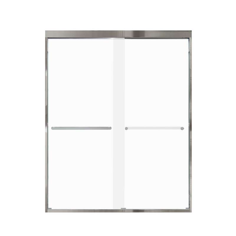 The Transolid Frederick Semi-Frameless By-Pass Shower Door Collection combines the practicality of a space saving design with custom quality craftsmanship. The collection features thick, premium 5/16 in. (8mm) frosted tempered glass with professionally applied Nano clear glass coating, which provides superior dirt and water repellant and stain resistant benefits. TruMotion® technology makes our shower doors close softly and effortlessly no matter how hard you slam them or how heavy they are and the Frederick door provides up to 2/5 in. of out-of-plumb adjustability on each side to provide a watertight fit in your alcove. The Frederick Door is available in a wide array of width and height options with several desirable hardware finish options to match your bathroom's interior design and layout perfectly. Built for an alcove (3-wall) shower enclosure, sliding glass shower doors can be opened from left or right with its full by-pass (both panels slide) design. 20 in. (500 mm from center to center) sliding shower door handles also function as towel bars, providing handy storage space for a folded bath towel or two hand towels. Multiple Transolid handle options are available, but this combination features the contemporary Riley handles in a Polished Chrome finish. The Riley handles are part of the Meridian series and feature a unique, high-end design, adding a distinctive look to your Frederick shower door. These handles are substantial in weight and are every bit as functional as they are beautiful. Look for the matching grab bar to complete the look!
