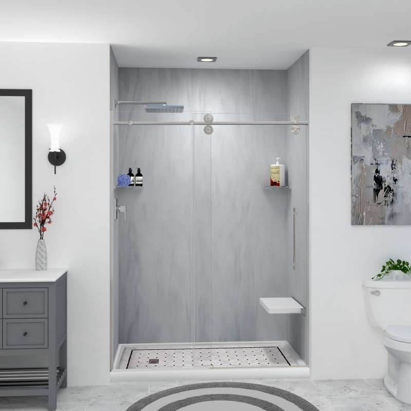 Pre-tiled, pre-grouted Transolid shower bases elevate the appearance of your shower without the hassle and mess of tiling. Pairing this beautiful shower base with any Transolid Titan, Prodigy, Expressions, or SaraMar wall kit gives you endless opportunities to achieve your desired style. Put your mind at ease with simplified installation and long-lasting durability. Choose our pre-tiled shower base to redefine your space with a sophisticated, modern touch.