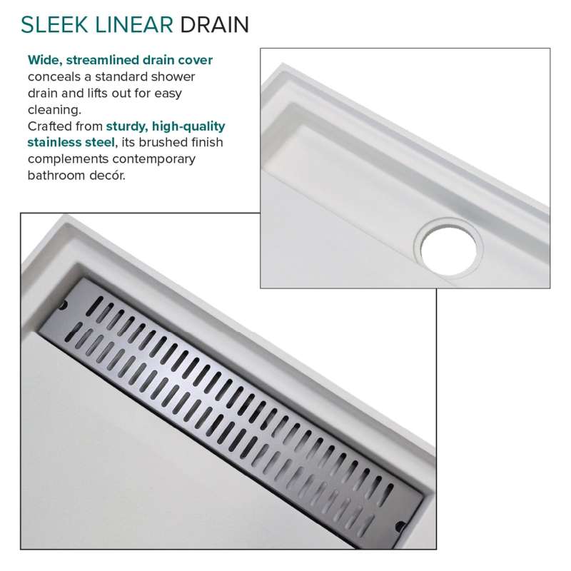Introducing our commercial-grade shower base, engineered for durability and performance. Featuring a heavy-duty stainless steel trench drain cover, this base is built to withstand high-traffic environments with ease. The finely textured slip-resistant surface provides added safety, while the solid surface material offers density and consistency throughout, making it easy to repair. It is cast as a single piece, ensuring a soft-to-the-touch surface with a gentle matte finish.