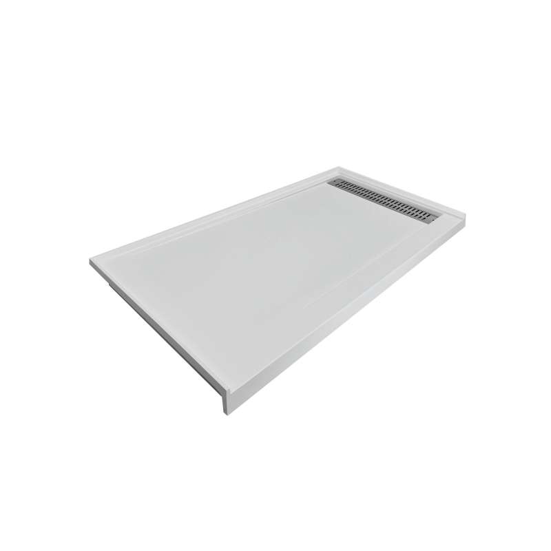Introducing our commercial-grade shower base, engineered for durability and performance. Featuring a heavy-duty stainless steel trench drain cover, this base is built to withstand high-traffic environments with ease. The finely textured slip-resistant surface provides added safety, while the solid surface material offers density and consistency throughout, making it easy to repair. It is cast as a single piece, ensuring a soft-to-the-touch surface with a gentle matte finish.