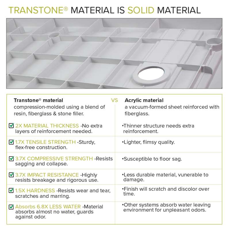 Who doesn't love the look of a beautifully tiled shower? Their elegance and charm create a dreamy, magazine-worthy space, but with challenging construction and expensive installation fees, tiled showers only seem to exist on Pinterest boards. That is, until now. With a Transolid Tile Ready shower base, you can now have the beautiful and luxurious tiled shower that you see in your dreams. Constructed of premium Transtone material, a powerful SMC, Transolid Tile Ready shower bases create a durable and waterproof hollow that ensures simple installation and a long-term, leak-proof design.