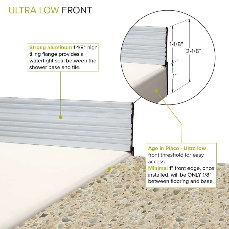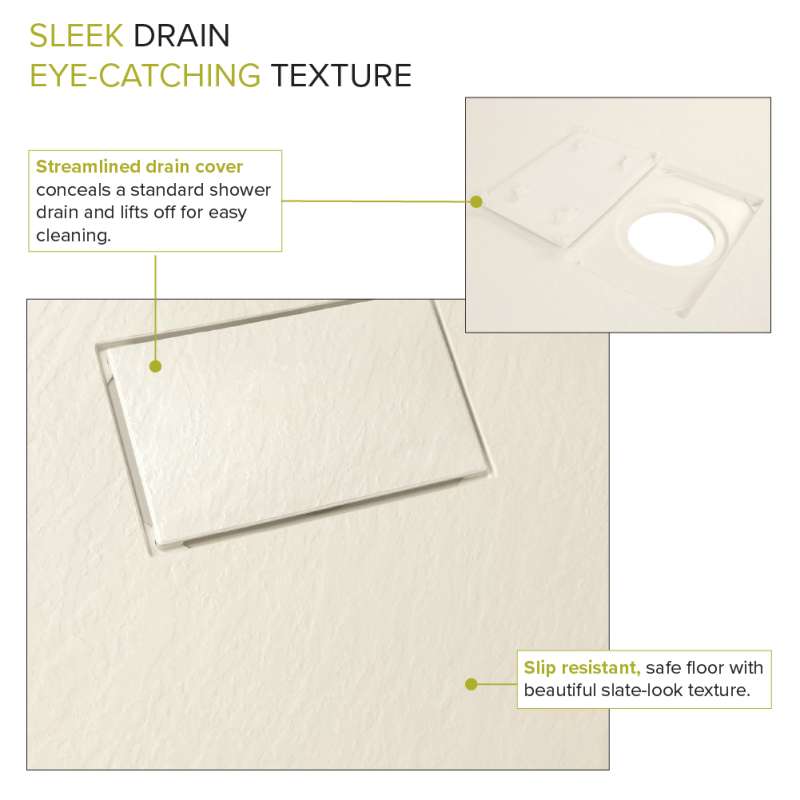 Transolid's zero threshold shower base is a perfect solution for those who have trouble stepping over a higher shower threshold or bath or for anyone who enjoys the beauty and simplicity of a flush shower floor. Made of numerous layers of Transtone, a sheet-molded compound material that is solid throughout the base and is supported by sturdy structural ribs underneath that radiate out from the drain opening. When combined with a thinset mortar installation, this creates a flex-free, water-tight installation and a foundation that you can count on. This slip resistant, zero threshold shower base features a beautiful slate finish and can be used with single, double or triple threshold installations.