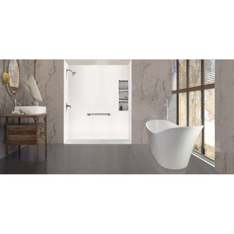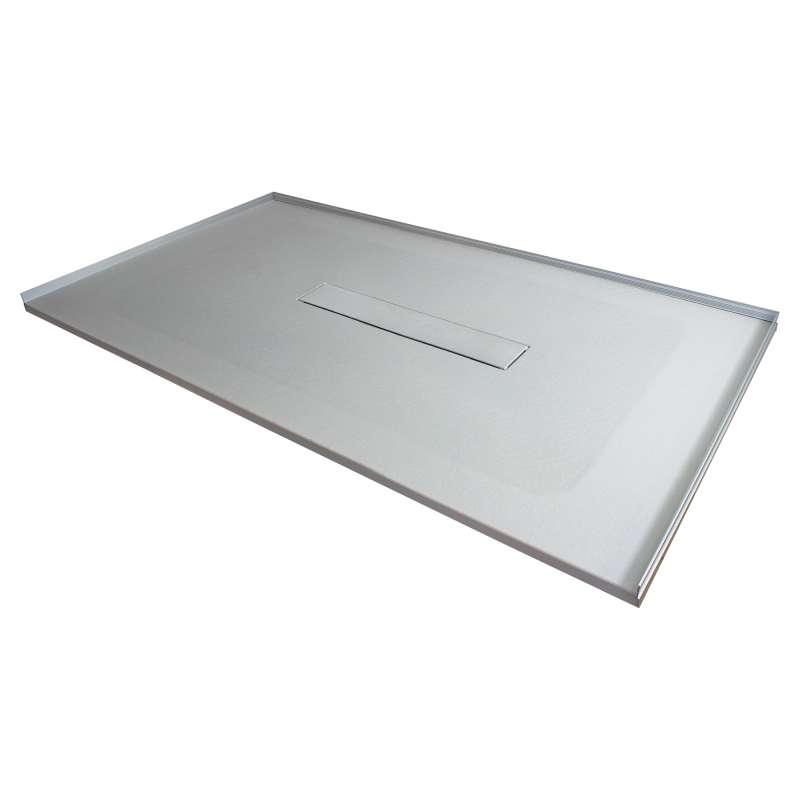 Transolid's zero threshold shower base is a perfect solution for those who have trouble stepping over a higher shower threshold or bath or for anyone who enjoys the beauty and simplicity of a flush shower floor. Made of numerous layers of Transtone, a sheet-molded compound material that is solid throughout the base and is supported by sturdy structural ribs underneath that radiate out from the drain opening. When combined with a thinset mortar installation, this creates a flex-free, water-tight installation and a foundation that you can count on. This slip resistant, zero threshold shower base features a beautiful slate finish and can be used with single, double or triple threshold installations.