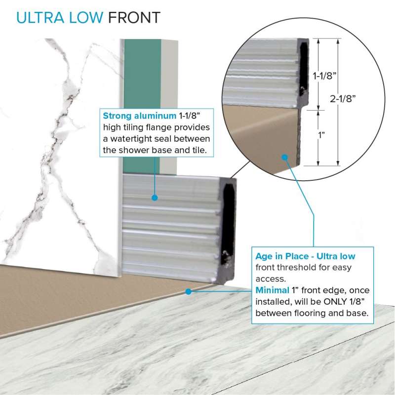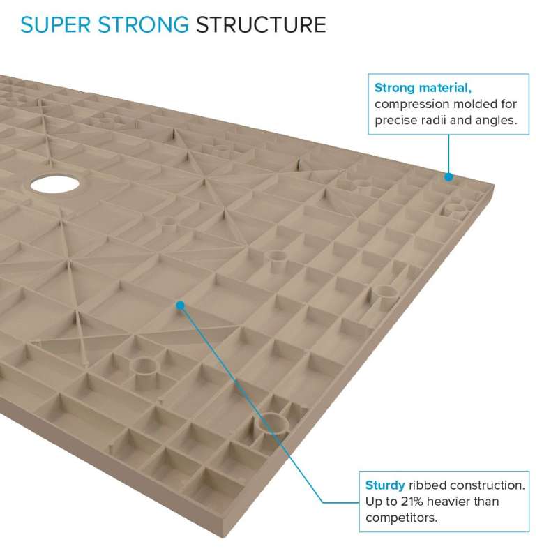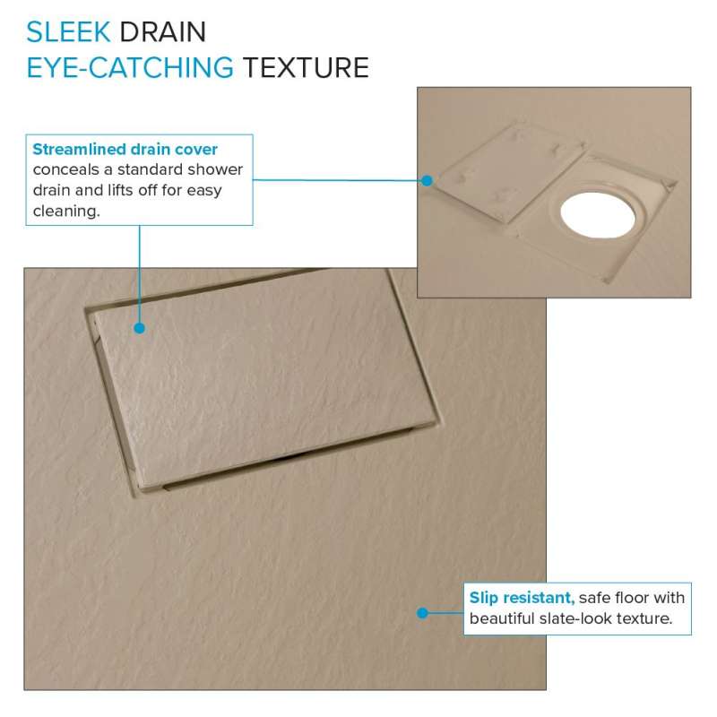 Experience the ultimate shower solution with zero threshold shower bases. Crafted from solid sheet-molded compound material with sturdy structural ribs, it ensures durability and stability. Field trimmable for customization. Install with thinset mortar for a reliable, water-tight foundation. With a slip-resistant slate finish, it's perfect for easy entry and flush shower floor aesthetics. Compatible with single, double, or triple threshold installations, it offers versatility for any bathroom.