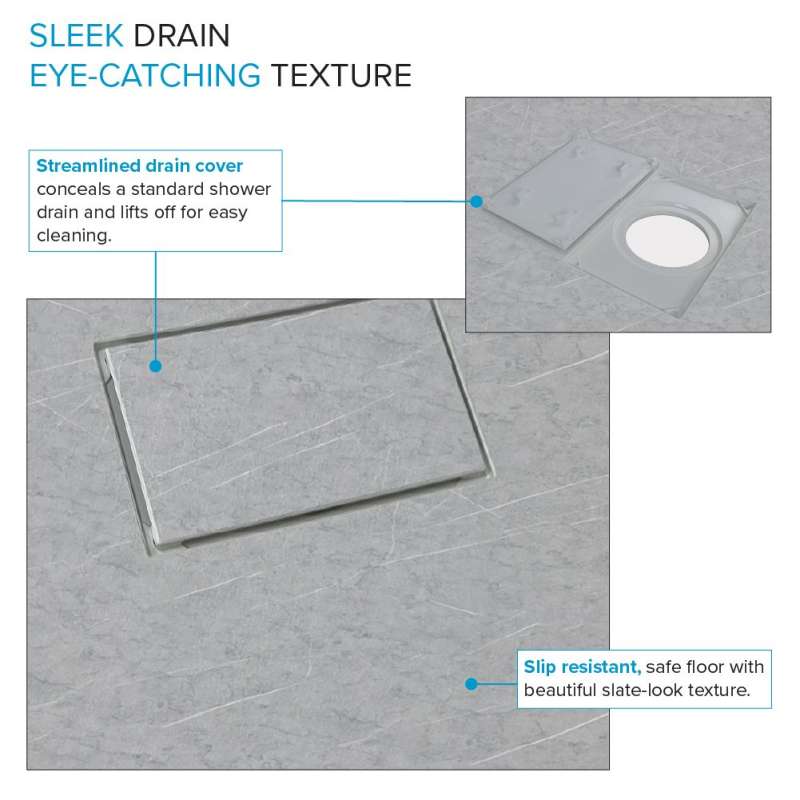Experience the ultimate shower solution with zero threshold shower bases. Crafted from solid sheet-molded compound material with sturdy structural ribs, it ensures durability and stability. Field trimmable for customization. Install with thinset mortar for a reliable, water-tight foundation. With a slip-resistant slate finish, it's perfect for easy entry and flush shower floor aesthetics. Compatible with single, double, or triple threshold installations, it offers versatility for any bathroom.