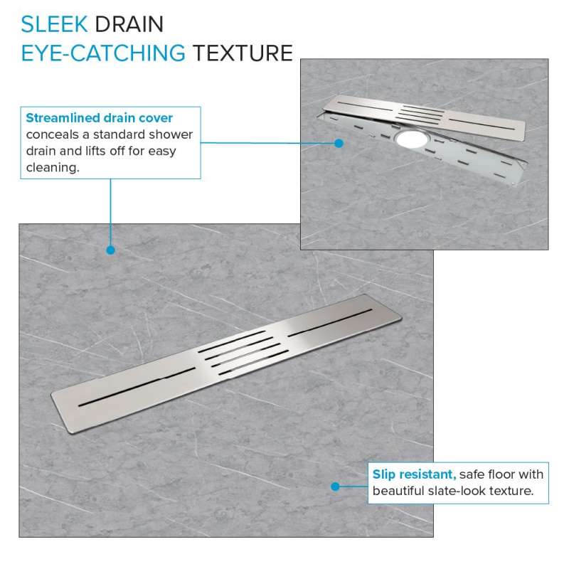 Experience the ultimate shower solution with zero threshold shower bases. Crafted from solid sheet-molded compound material with sturdy structural ribs, it ensures durability and stability. Field trimmable for customization. Install with thinset mortar for a reliable, water-tight foundation. With a slip-resistant slate finish, it's perfect for easy entry and flush shower floor aesthetics. Compatible with single, double, or triple threshold installations, it offers versatility for any bathroom.