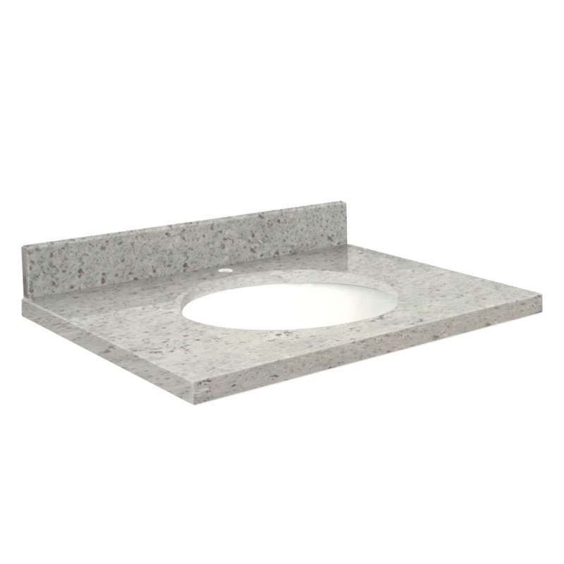 Transolid natural stone vanity tops feature a smooth, high gloss finish and an easy care beauty that lasts a lifetime. Our penetrating sealer helps protect your top from resistance to cracks, chips and scratches. Granite is a natural hard stone polished to a smooth, high gloss finish. Natural stone has typical variations in both color and pattern. All include undermount oval china bowl and a 4-in loose backsplash.