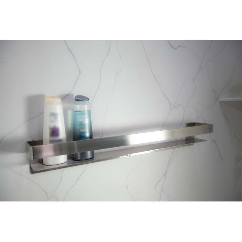 Transolid stainless steel grab bars shelves are a beautiful, easy-to-install addition to Transolid Titan, Prodigy, Expressions, and SaraMar solid surface walls, or any other solid surface or tile shower. Achieve peace of mind with durable shelving with a featured rail that won’t let your shower products fall. Corrosion, rust, and chemical resistant material ensures this sleek design will add to your space without adding to your to-do list.